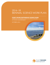 This is the 4th biennial science work plan (BSWP) developed by the Puget Sound Partnership’s Science Panel. This 2016-18 BSWP, like its predecessors, identifies specific science work actions to be done over the next 2 years and provides recommendations for improvements to the ongoing science work in Puget Sound. This version of the BSWP builds upon the Partnership’s Strategic Science Plan (2010) and carries forward the Panel’s thinking about recommendations and priorities as expressed in the preceding BSWPs. This version of the BSWP introduces 2 innovations: (1) top priority science work actions are identified within the BSWP and (2) this BSWP discusses the Panel’s perspective on science actions included as near-term actions (NTAs) in the accompanying Action Agenda.